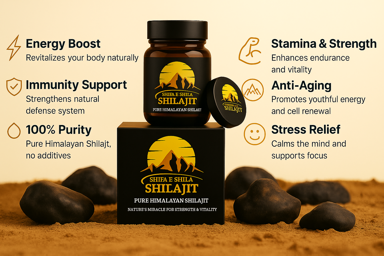 At Shifa e Shila, we bring you Pure Himalayan Shilajit — directly sourced from the highest peaks of the Himalayas to help you reclaim your vitality and boost your overall wellness.